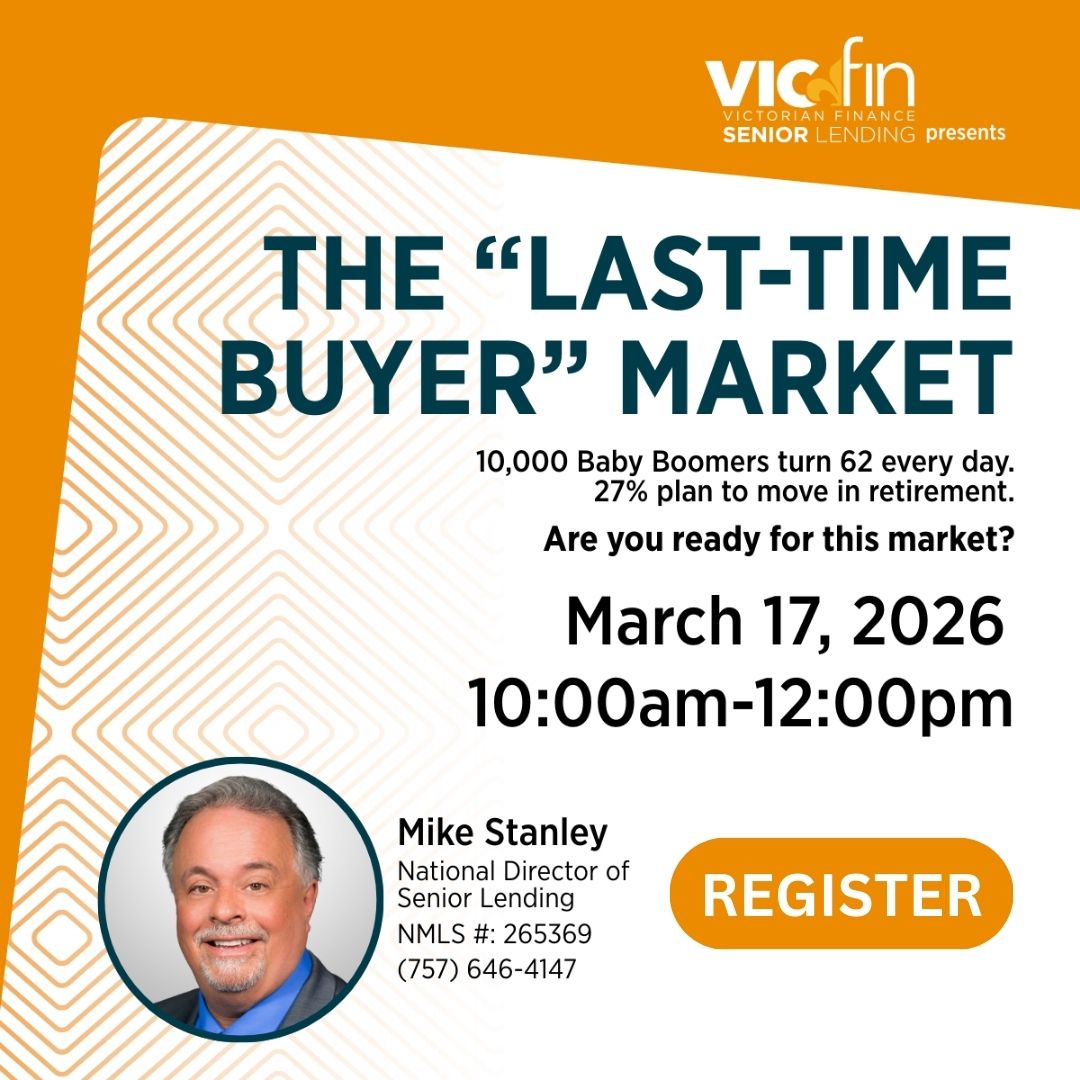 Senior Financing Lunch & Learn: Making sure you’re ready for the “last-time” buyer market. Hosted by Victorian Finance.
